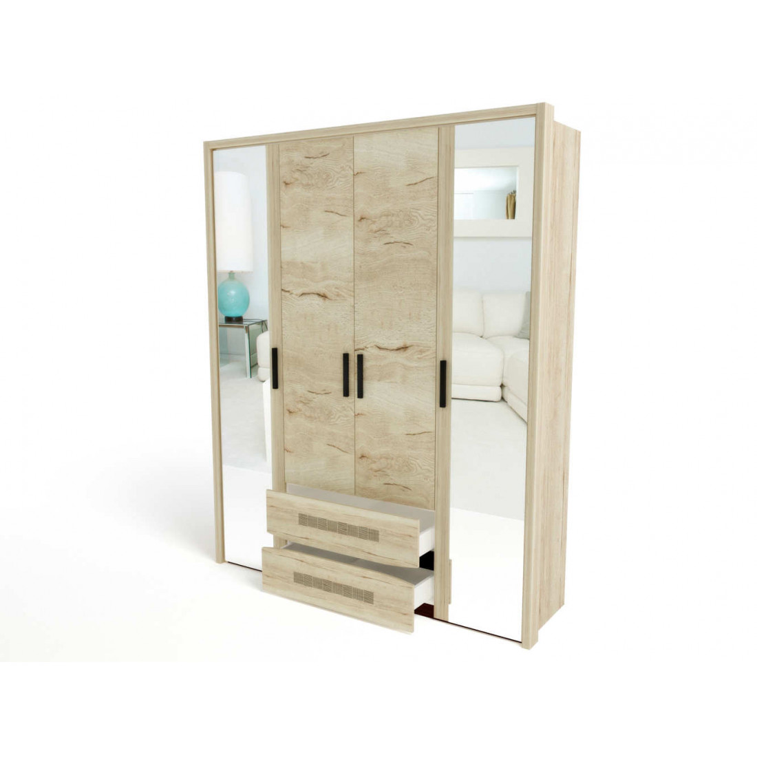 Четырехстворчатый шкаф для одежды СМ-13 Мале с зеркалом