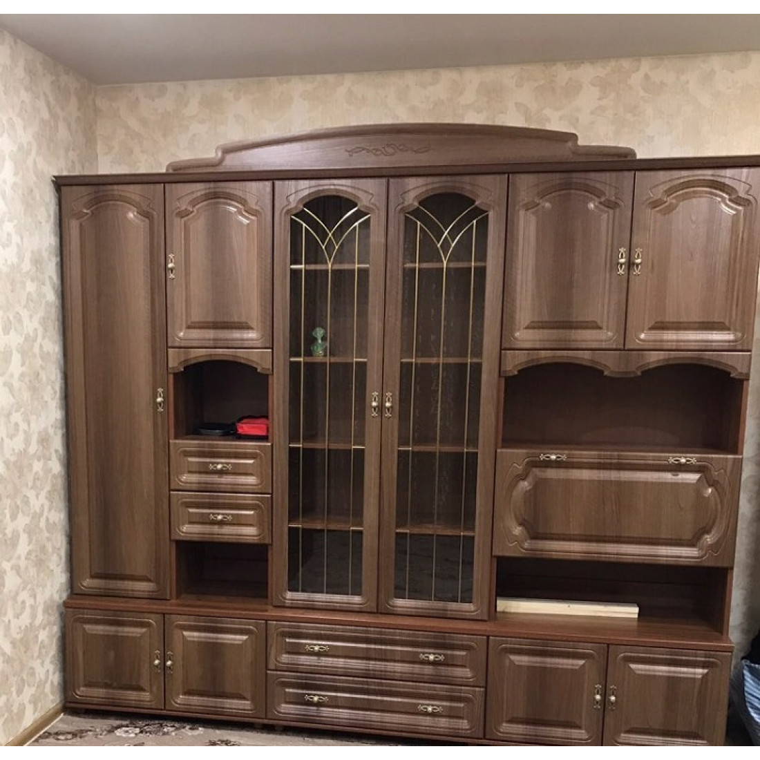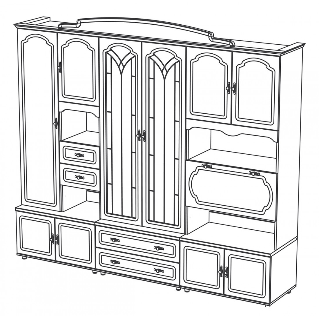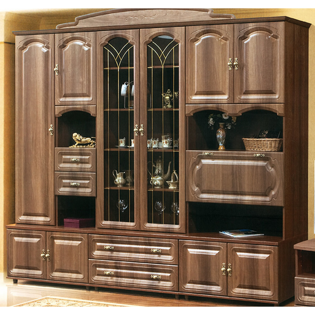Стенка для гостиной Романтика ВК-09.2, цветовое исполнение орех темный.